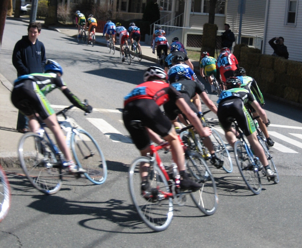Simon Blake says that the best place to start is in the front half of the peleton, and that advice is more than useful in a Crit. What generally happens is that the bunch tends to slow down when approaching a corner, then sprint out of the turn. If you are in the front half, you’re in a safe spot as you are barely affected by the slowing down and surges. However, if you are at the back, when the front has already started sprinting, you will probably still be on your brakes, and therefore with all the surging and catching up, early burnout is expected.