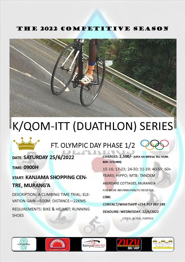 6. The Duathlon is an option. The bike time trial will start at the same venue and end at Kihoya Town, then the run will continue to Wanjerere.